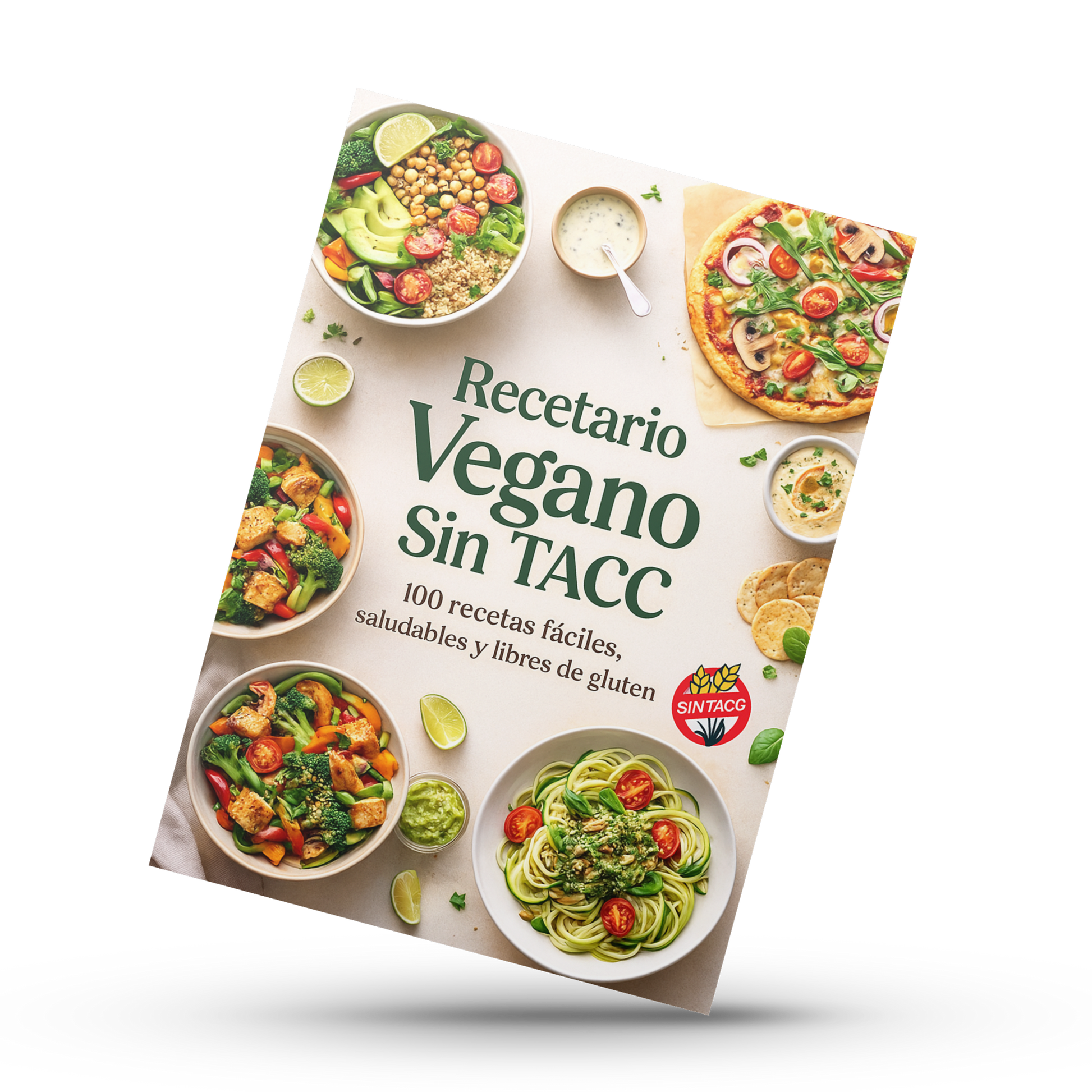 Sí 💚 Todas las recetas son 100% veganas (sin ingredientes de origen animal) y sin TACC, pensadas para personas que quieren evitar el gluten. Si sos celíaca/o, te recomiendo igualmente verificar que los productos que uses tengan el logo oficial “Sin TACC”.